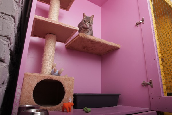 Împreună cu partenerii noștri de la Cats World am amenajat camerele din acest hotel animale din Bucuresti asemenea unui parc de aventură în miniatură, conceput special pentru pisici. Un șir de instalații din lemn și sfori formează pe pereții camerei trasee de urcare, plimbare și salt pe care pisica își poate exersa aptitudinile sale preferate. Timpul petrecut departe de dvs. i se va părea mai scurt în Cats World.